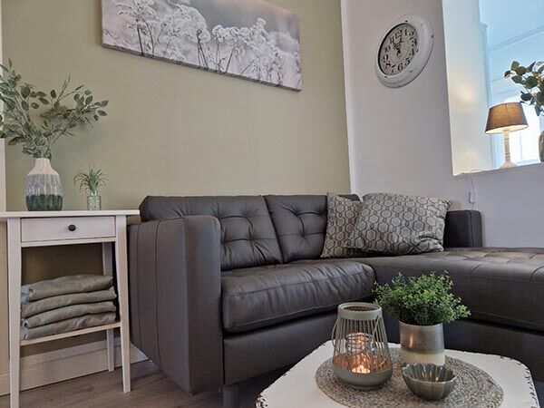 Im gemütlichen Wohnbereich lässt es sich entspannt lesen, fernsehen, klönen oder einfach nur relaxen. Smart TV und W-Lan ist natürlich vorhanden.