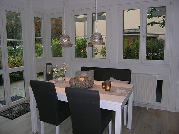 Die große Wohnküche ist in einer Veranda untergebracht. Die Küchenzeile im Landhausstil ist mit modernen Geräten ausgestattet. Ob Mikrowelle, Geschirrspüler, Ceranfeld, Backofen oder großer Kühlschrank; es ist einfach alles vorhanden. Sollte Ihnen einmal etwas fehlen, dann teilen Sie uns das mit. Wir freuen uns über Anregungen.