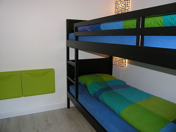 Ihre Kinder haben ein eigenes Reich mit Etagenbett und Spielzeug. Im an die Küche angrenzenden Wohnzimmer können Sie relaxen, klönen oder fernsehen. Natürlich verfügt die Wohnung über ein modernes Bad mit Dusche und reichlich Stauraum.